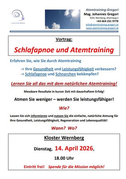 10.03 & 24.03 „Gong-Abende im Kloster“ Infos: 0660 5452335 Frau Platzer