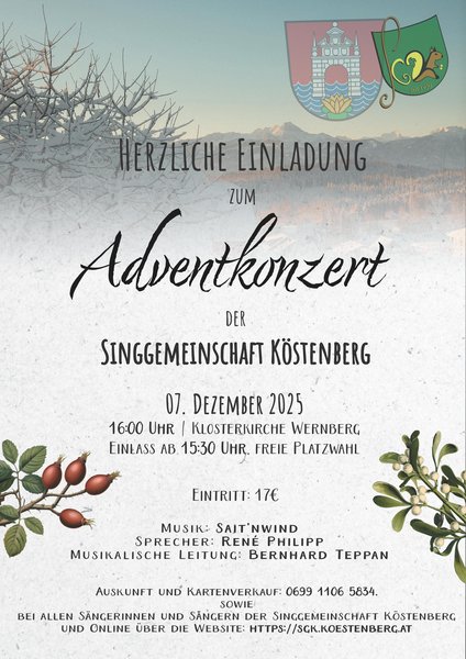 Der Jugendchor Wernberg unter der Leitung von Carolin Ulbing gibt am 14.12.2025 um 17:00 Uhr ein Konzert in unserer Klosterkirche.